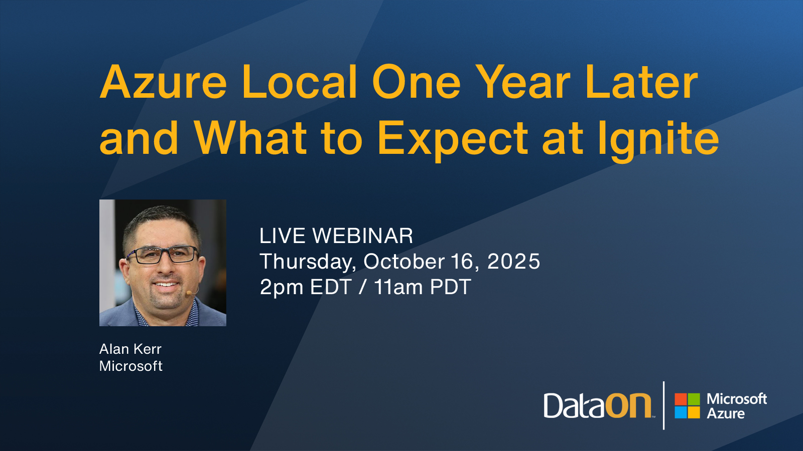 Thursday, October 16, 2025 2pm EST / 11am PST It’s been almost a year since Microsoft announced the change from Azure Stack HCI to Azure Local. Microsoft’s Alan Kerr takes a look back at what has changed in the last year, and what to expect for Azure Local at Microsoft Ignite Download the calendar file